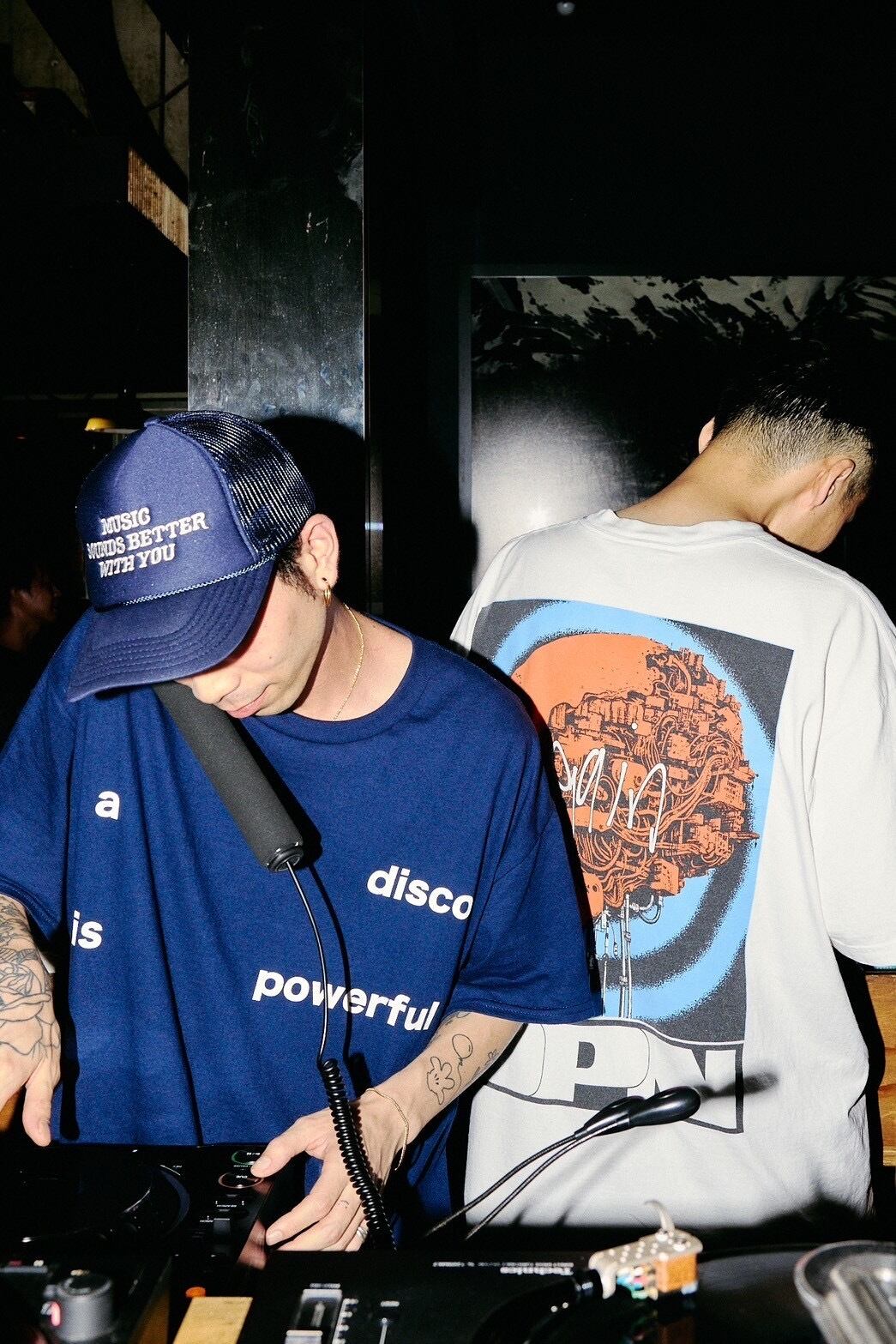 フロントにメッセージを乗せてバックプリントにはレーベルロゴをプリントしてます。
